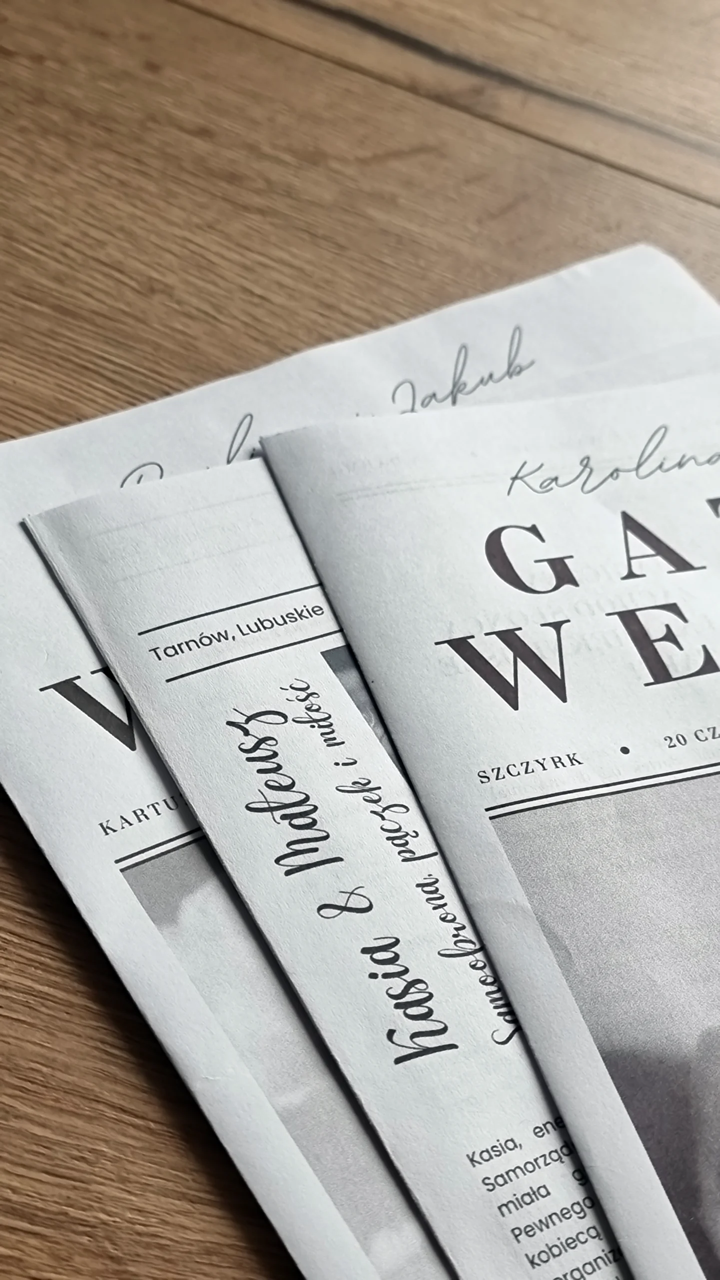 Gazeta Weselna to połączenie elegancji, praktyczności i emocji. To wyjątkowy element, który zaskoczy gości, zaangażuje ich w Waszą historię i zostanie z nimi na dłużej.