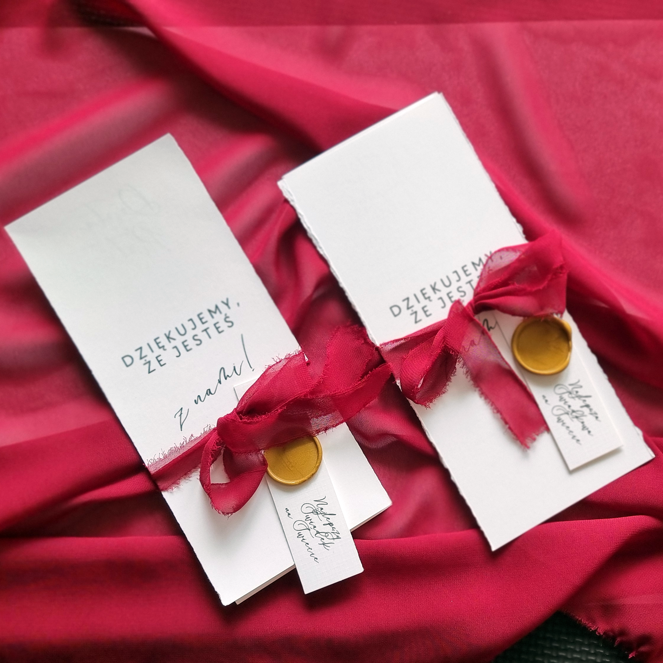 Kolekcja papeterii Dwie Wstążki to esencja romantycznej klasyki, wzbogacona o subtelny, symboliczny motyw graficzny. Jest to idealny wybór dla par, które poszukują papeterii łączącej tradycyjny szyk z urokliwym, graficznym detalem. Nazwa Dwie Wstążki nawiązuje bezpośrednio do centralnego motywu, symbolizującego połączenie dwóch osób i uroczyste „zawiązanie” ich losów.