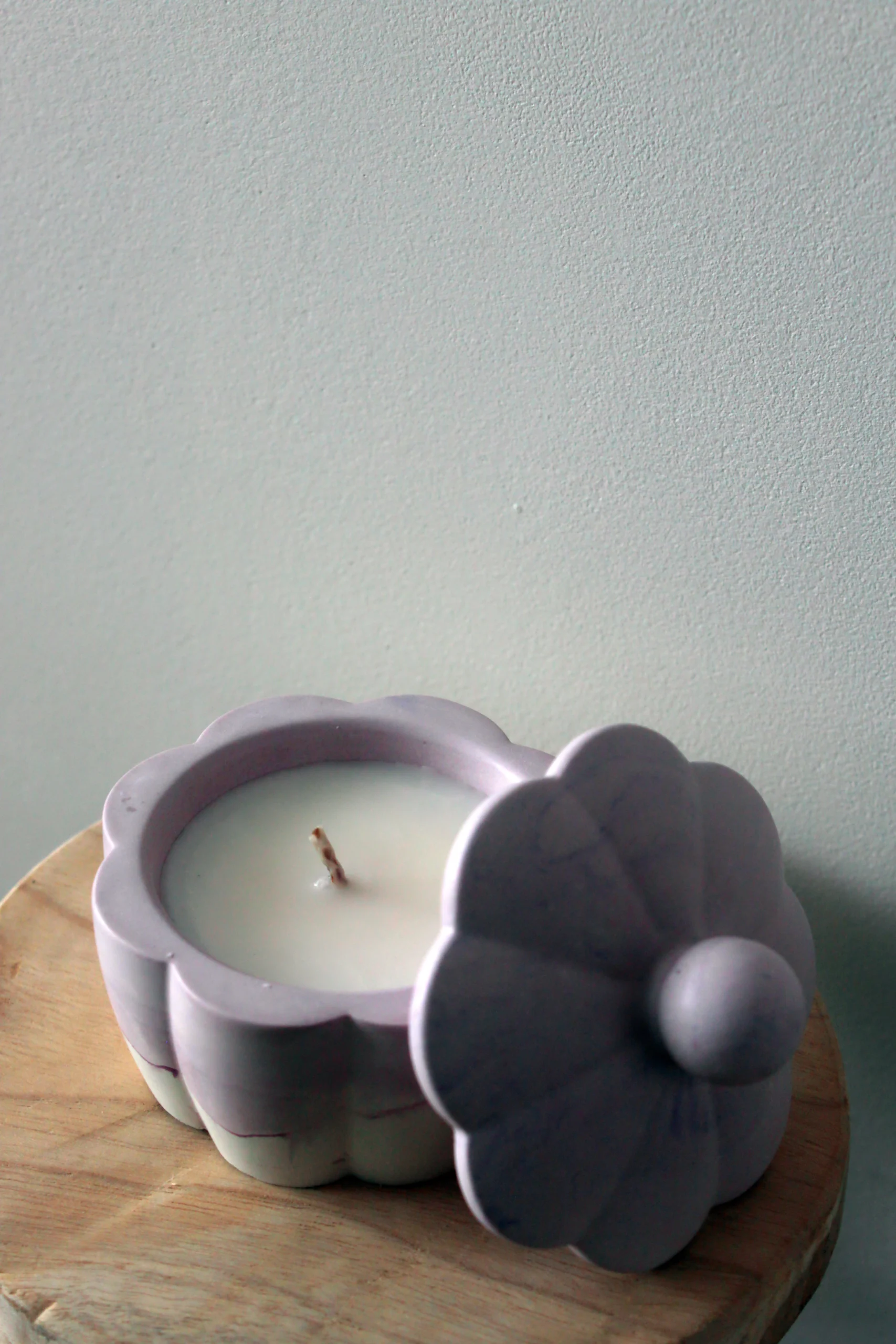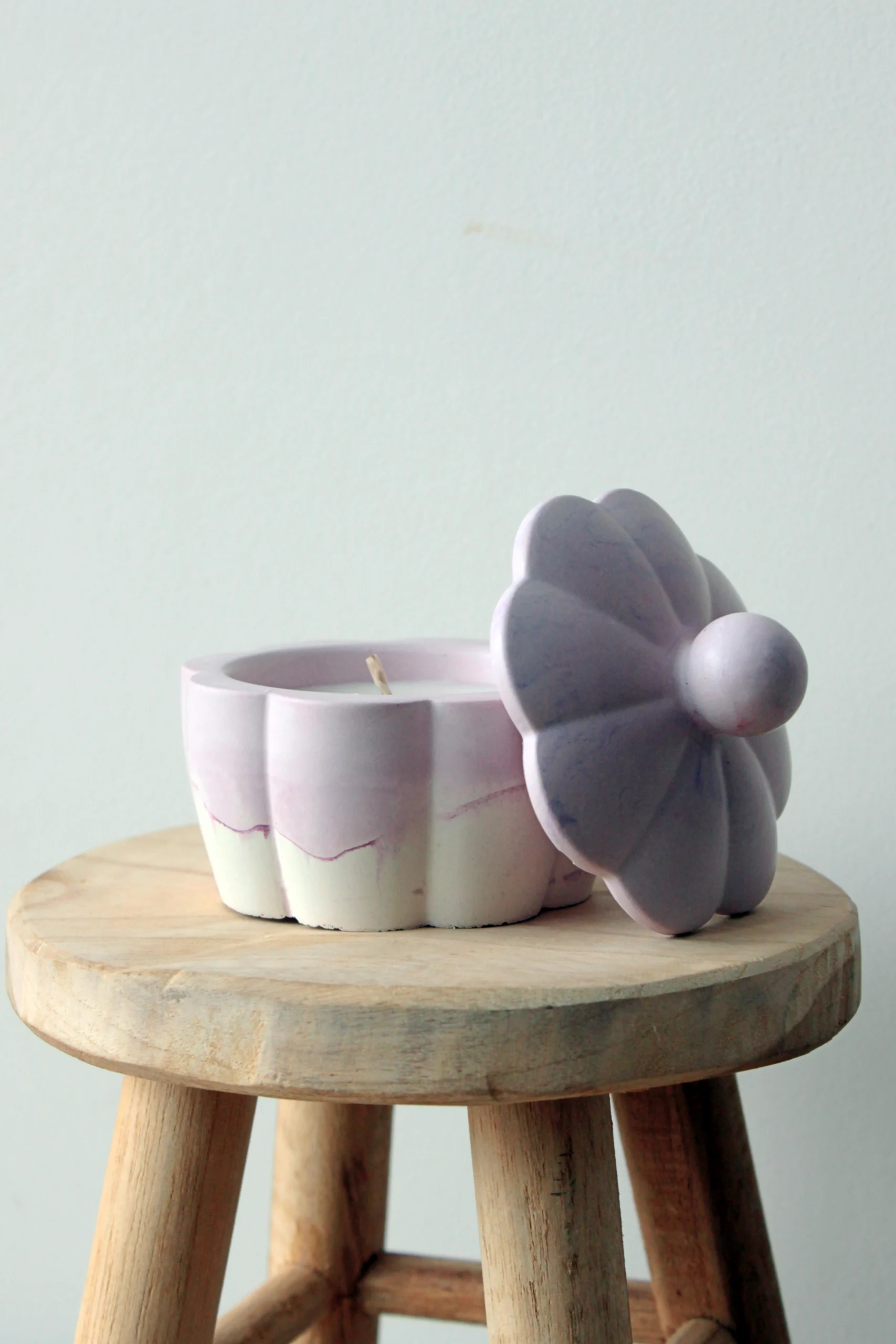 Materiał: gips polimerowy, wosk sojowy, knot bawełniany, naturalny olejek zapachowy