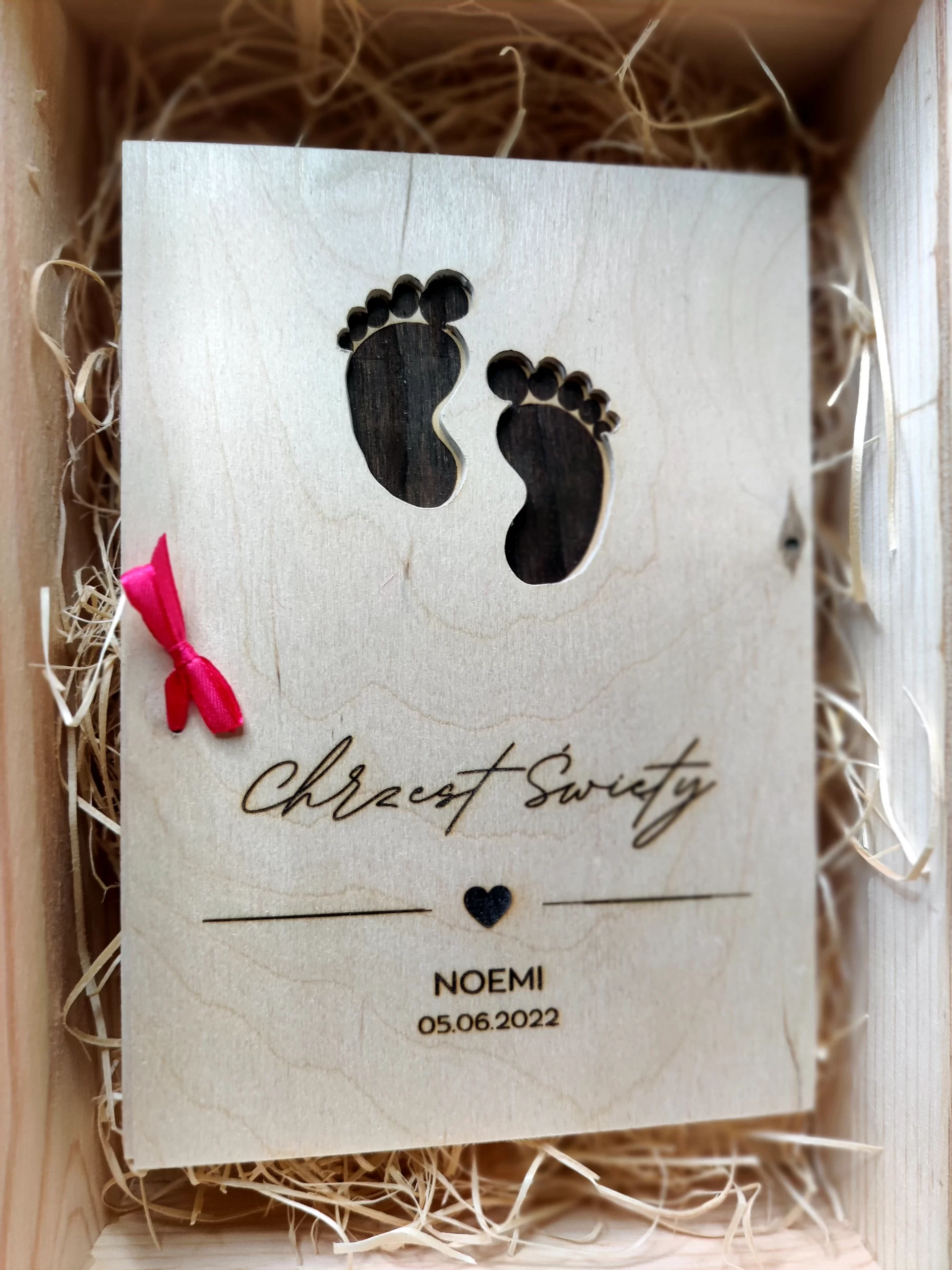 …to wyjątkowy prezent, który będzie stanowić cenną pamiątkę na całe życie. To ręcznie wykonane pudełko z drewna, starannie zdobione i personalizowane, zaprojektowane z myślą o zachowaniu najcenniejszych wspomnień z najważniejszych chwil w życiu dziecka i jego rodziny. Jeśli szukasz unikalnego upominku, który nie tylko zachwyci swoim wyglądem, ale również będzie praktyczny, nasza “Skrzynka – Pamiątka Chrztu Świętego” jest doskonałym wyborem.
